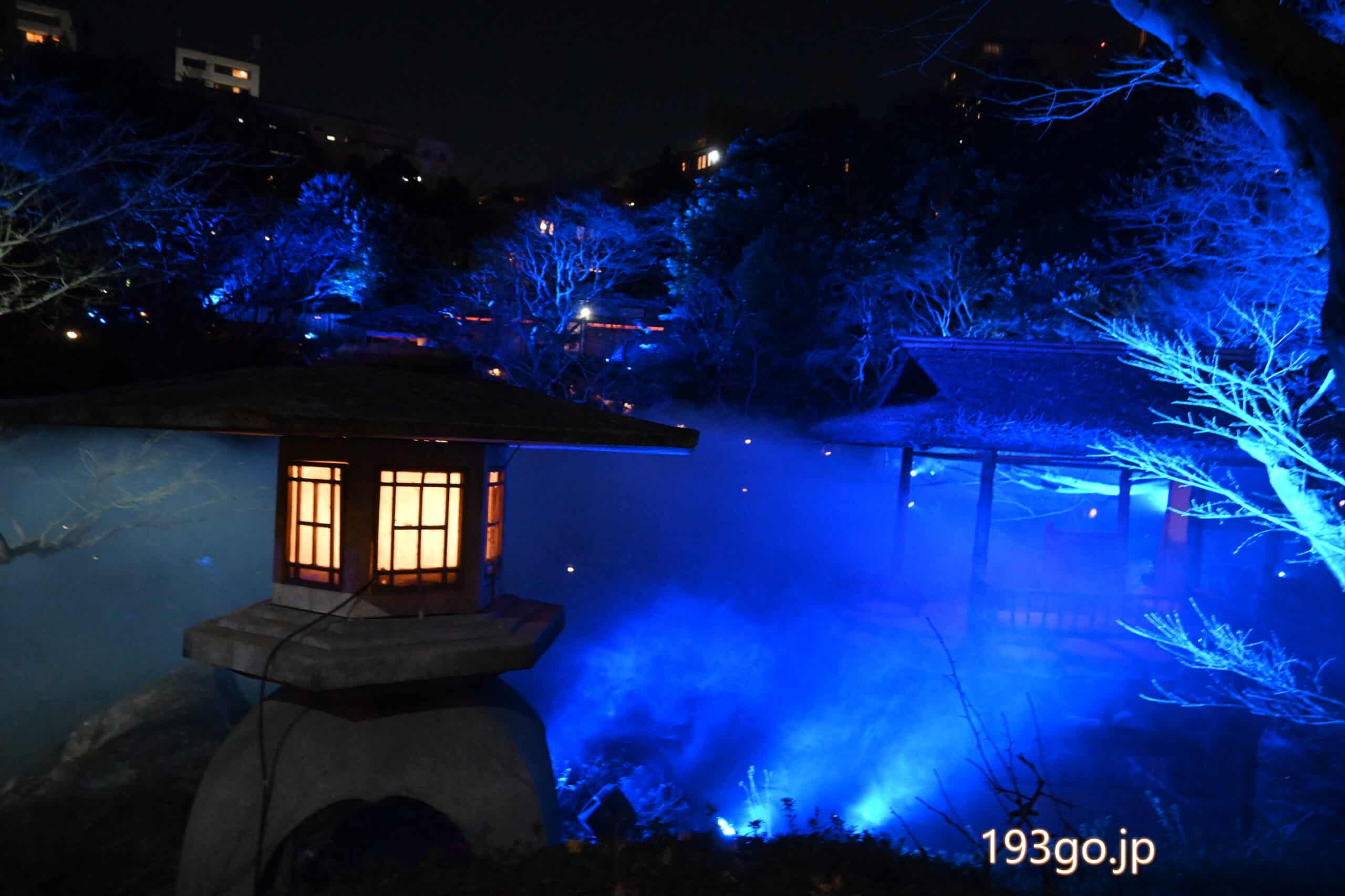 江戸時代から続く400年の歴史を誇る八芳園の日本庭園が青色にライトアップ!