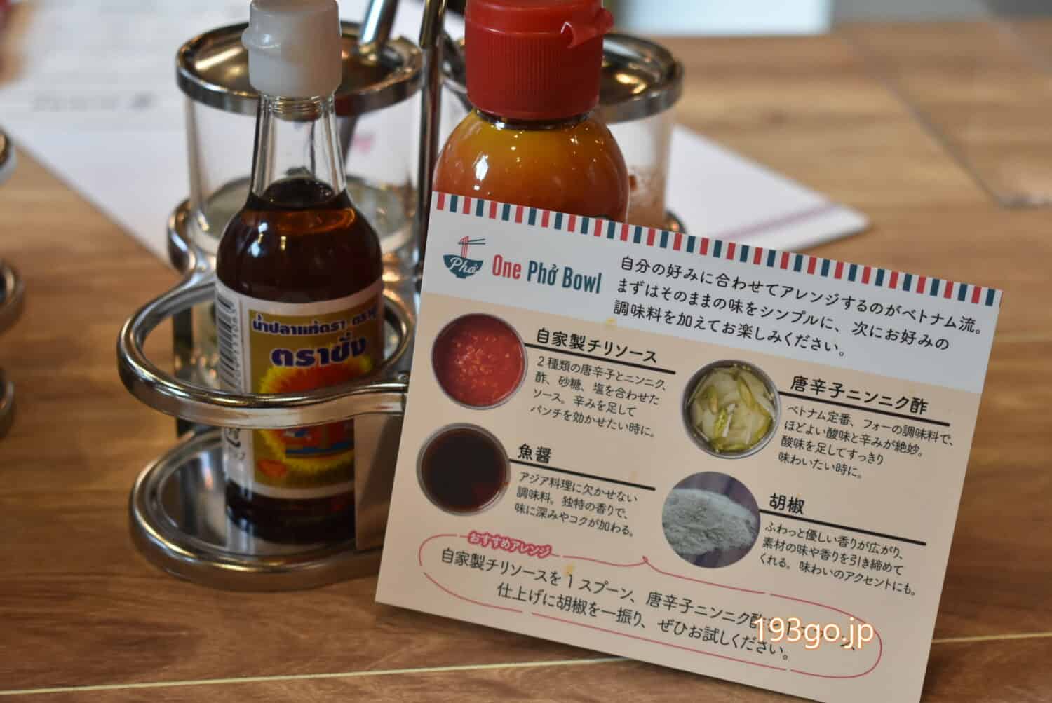 更に卓上のナンプラーや唐辛子にんにく酢、自家製チリソースで味変も!