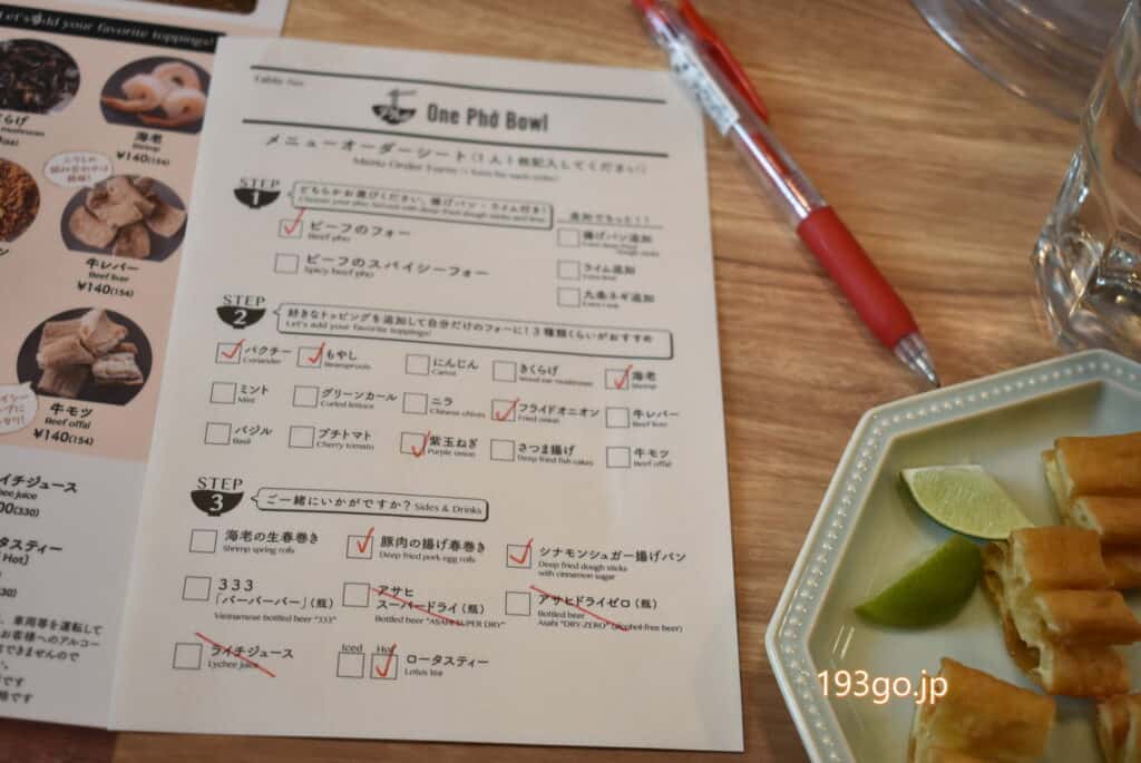 メニューはビーフのフォーとビーフのスパイシーフォーの2種類