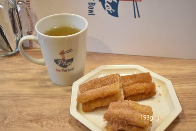 フォーの後に、ハマる食感の揚げパンと、すっきりしたロータスティーで〆。