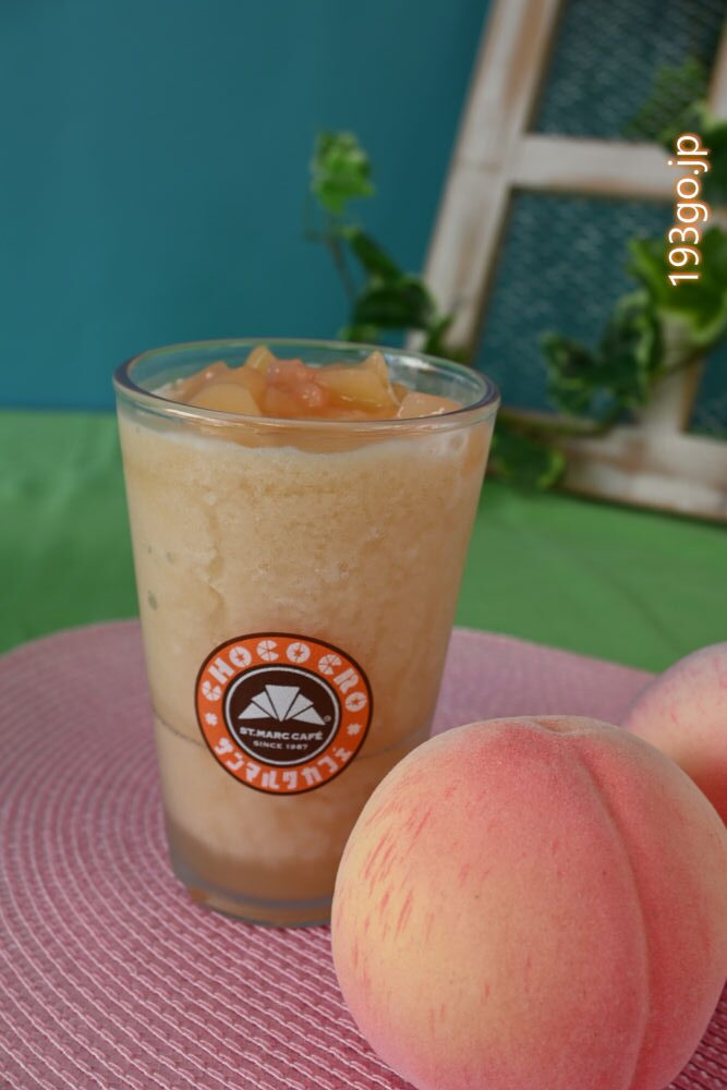 山梨県産白桃を使用したジューシーでみずみずしい果汁の甘さたっぷりの「山梨県産白桃スムージー 〜白桃果肉ソースのせ〜」
