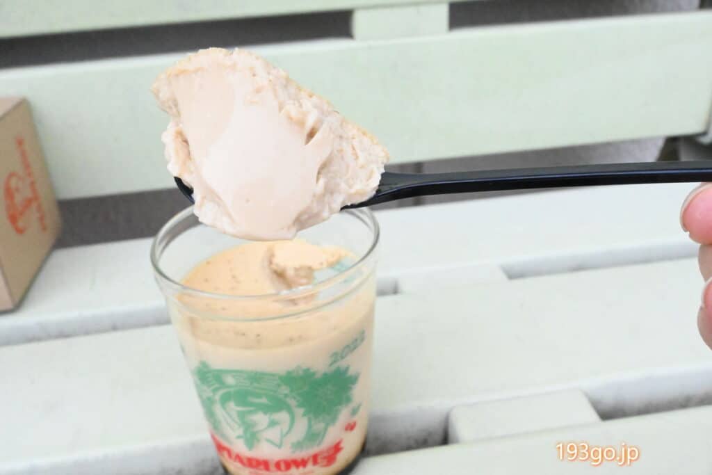 お店を出たところにベンチがあり、さっそく頂きます。