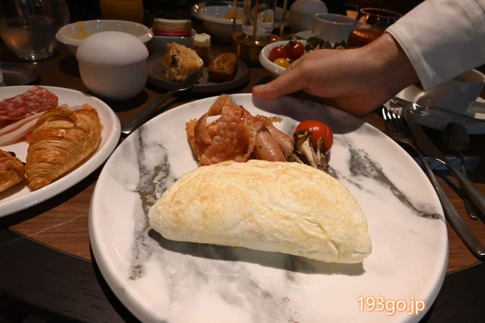 ホテルビュッフェでは、ライブキッチンの卵料理もいいけど、作り立てを席に運んでもらえるのは特別感がある。