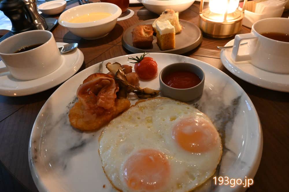 二つ並んだ可愛い目玉焼き。プルプル!シンプルな味わいが美味しい。