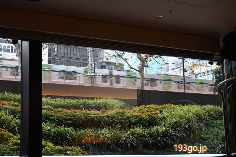 窓の外にはいつもとは違う角度から電車の行き来を望む。