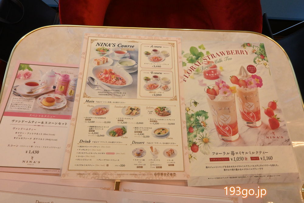 フードやドリンクは、薔薇やお花、苺などを取り入れた、赤やピンクがモチーフとなったニナスならではのオリジナルメニュー。可愛すぎる!通いたくなるラインナップ。