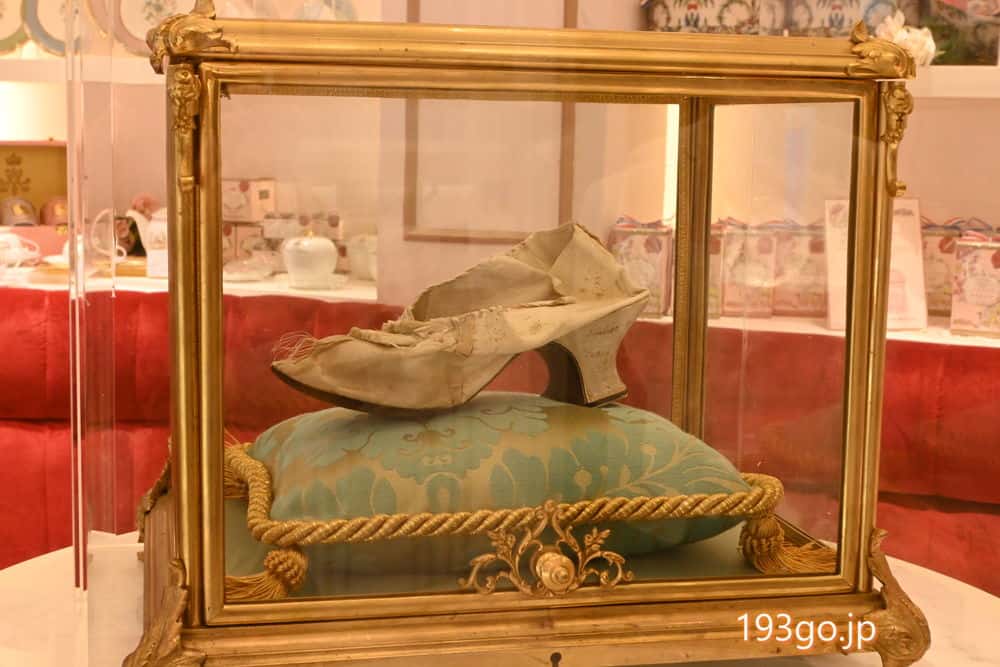 オープンを記念し、フランスの「ニナス パリ」本店が所蔵する、マリー・アントワネットが実際に着用していた靴も期間限定で飾られている。