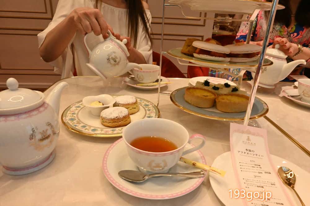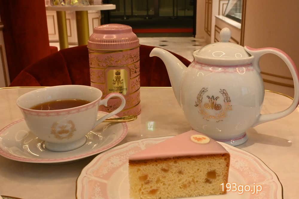 りんごとバラのフレーバーティー「ニナス オリジナル マリ ー・アントワネット ティー」が注がれ、