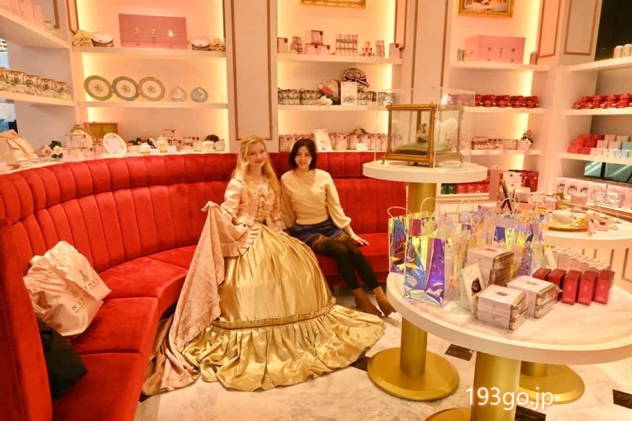 開店記念セレモニーには、“王妃”(マリー・アントワネットのモデルさん)も来ていたので、一緒にパチリ!