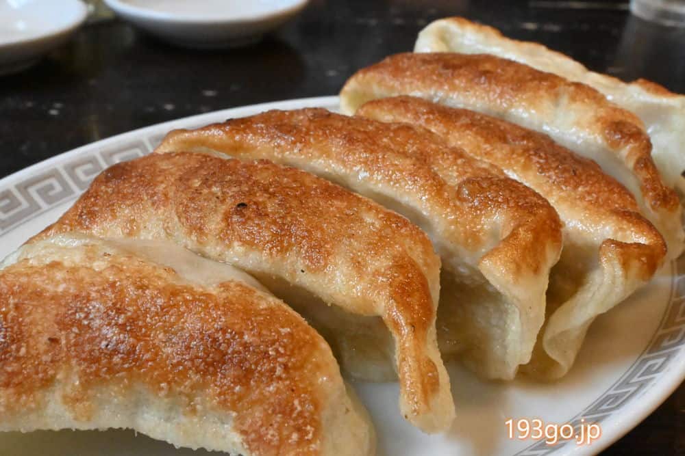 大ぶり餃子が6個。表面のきつね色がいいね。