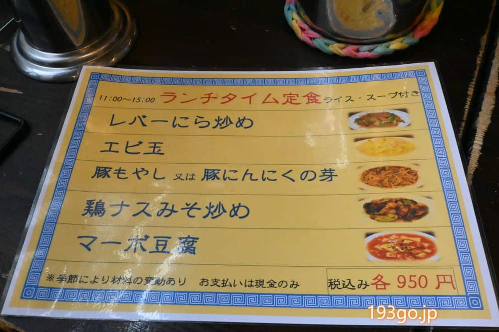 レバニラ炒め、海老玉、豚もやし、マーボ豆腐など。