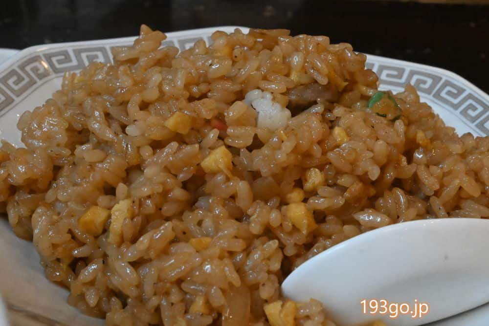 炒飯は、色の濃い、醤油の香ばしさのある焼き飯だ。
