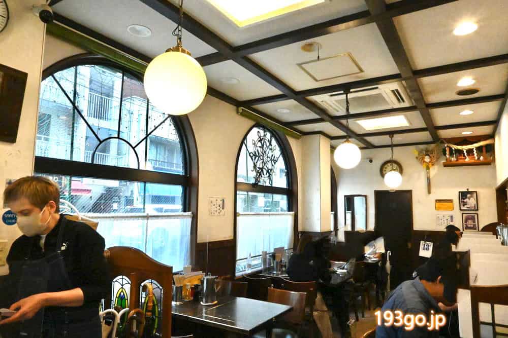 店内は、ステンドグラスを用いた木造で洋風さもあり、
