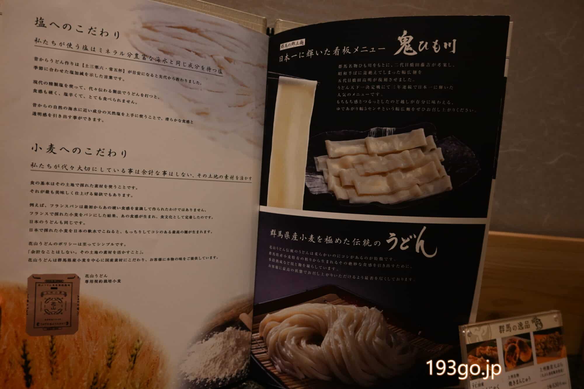大体のメニューは、ひも川うどん(鬼ひも川)か、うどん(群馬県産小麦の)が選べる様。
