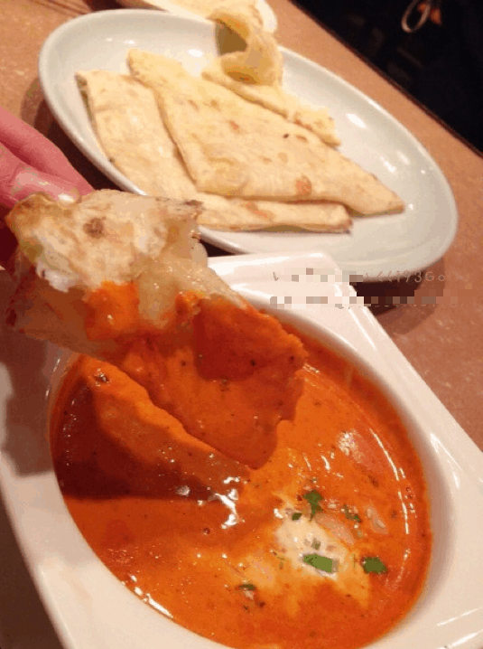 濃厚で甘~いバターチキンカレーをたっぷりチーズナンにつけて。