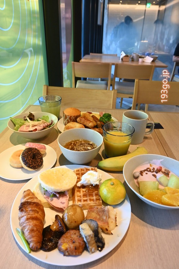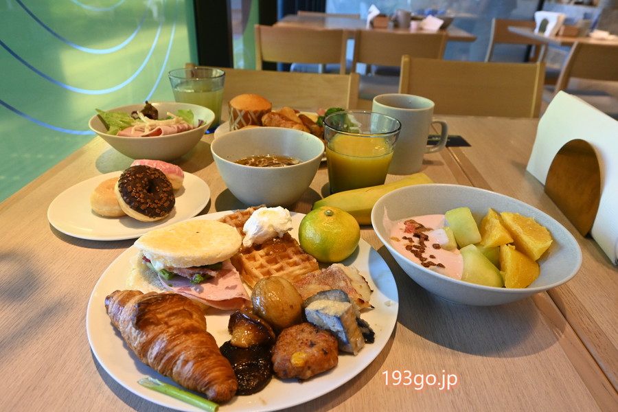 ヨーグルトは二種用意され、シリアルやドーナツ、彩り豊かなフルーツも並ぶ。