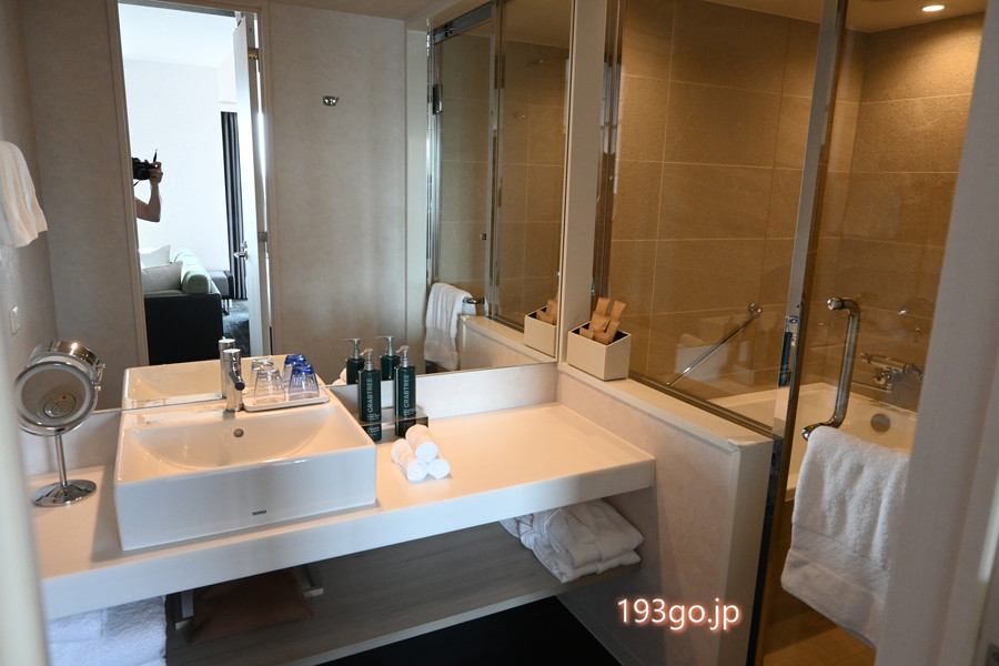 バス、トイレ、洗面台はそれぞれ独立し、バスアメニティにハンドソープ、ボディローション、