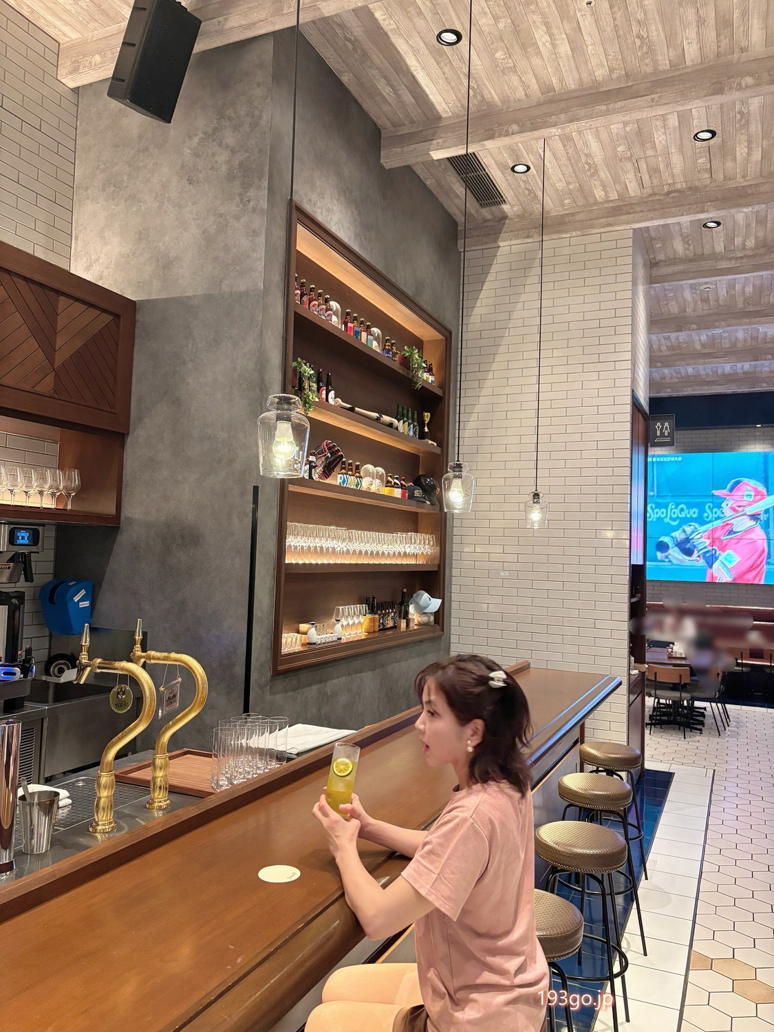 夜は2階のバー「Brew33 Bar」に行ってみた。大型モニターに映し出されるスポーツを観戦しながら、