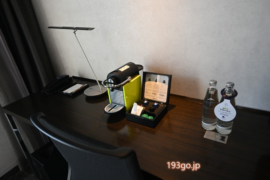 テレビ、デスク、ミネラルウォーター、ネスプレッソマシン、ティーセット、冷蔵庫などが完備。