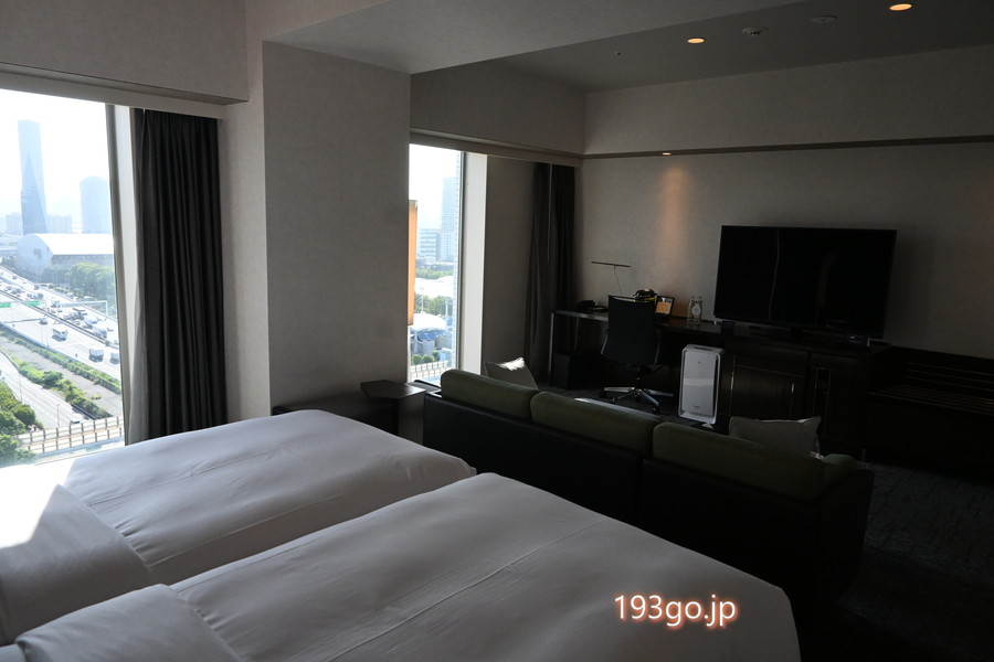 最上階のプレミアムルームへ!窓からベイエリアの絶景