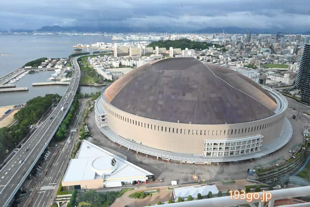 ここは「都市景観100選」に選ばれたシーサイドももち地区で、地上120mに位置するラウンジでは、