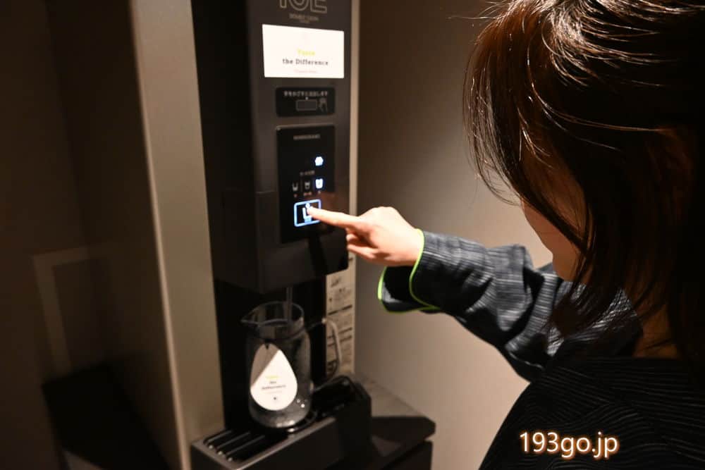 ペットボトルの水は置いてなく、各階にウォーターサーバーが配置されてるので、ここからお水をゲット。