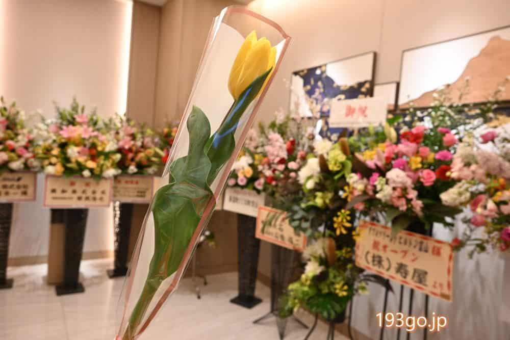 オープン日なのでお祝いの胡蝶蘭やお花がたくさん。一輪おすそ分けも。