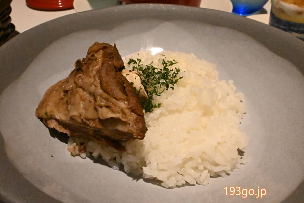 大きなお肉(ソーキ)がボンっと乗ったライスにカレーのルーをトロ~り。