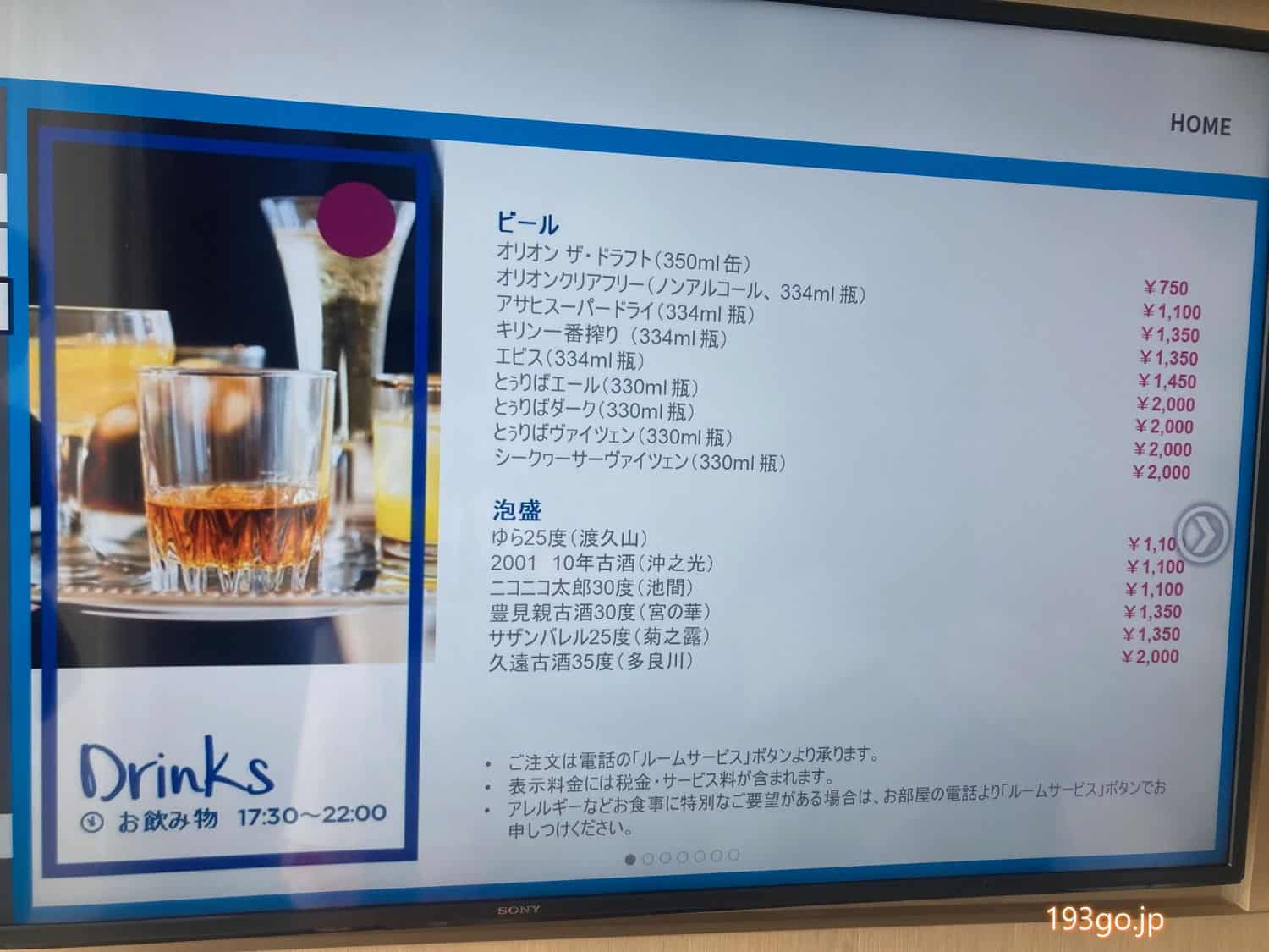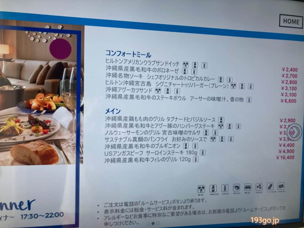 「ヒルトン沖縄宮古島リゾート」ルームサービスのメニューと値段