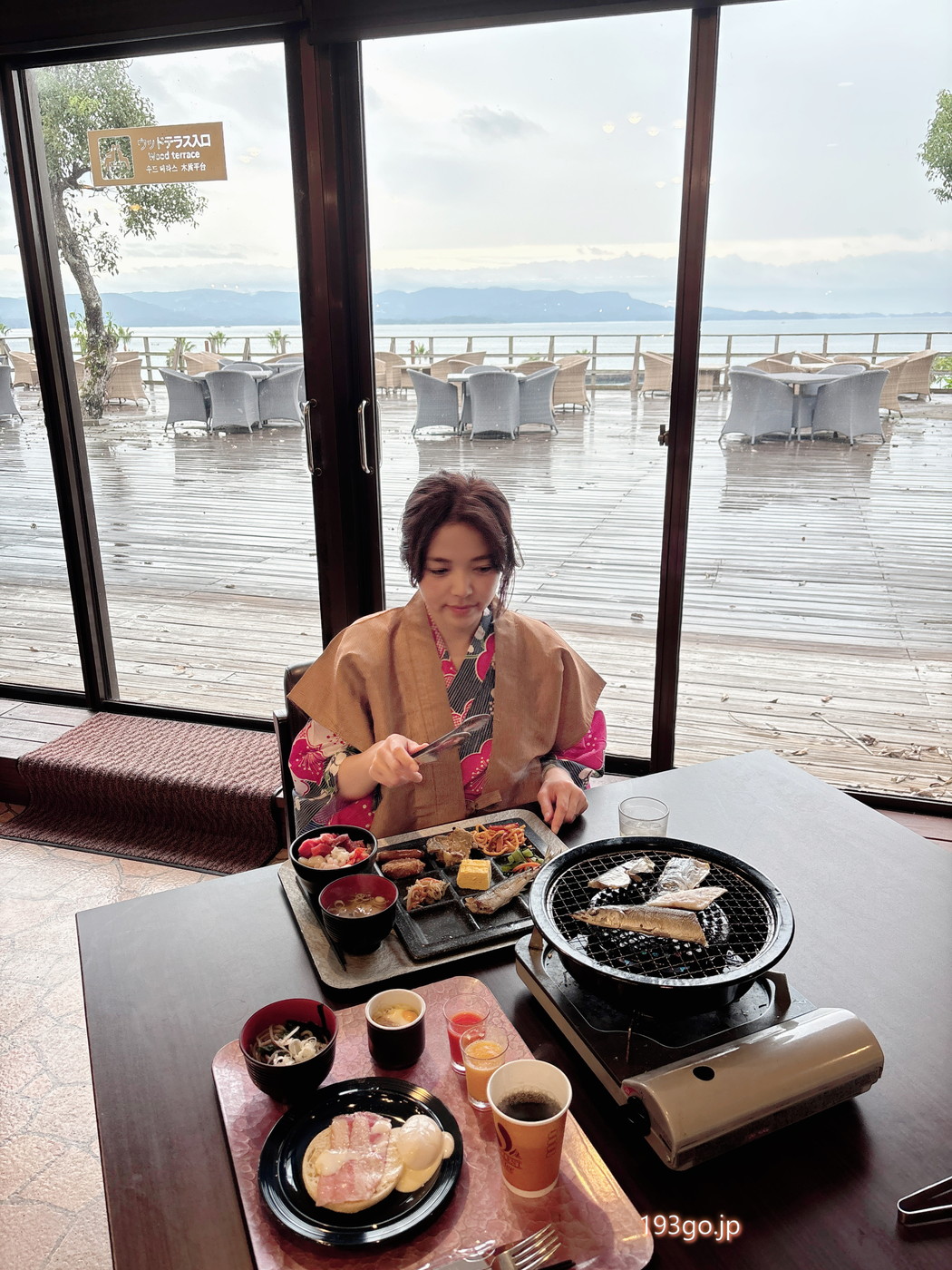 朝食は網の上で炙っていただく干物や旬の秋刀魚、海鮮丼に鯛出汁茶づけ、