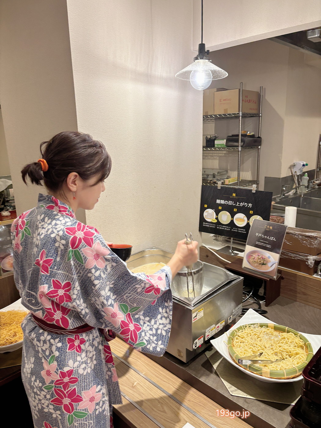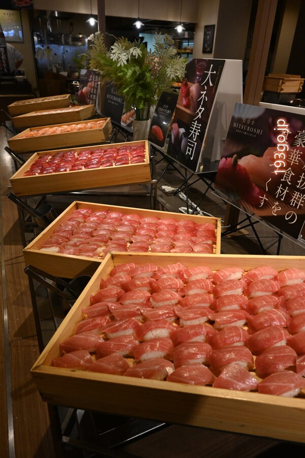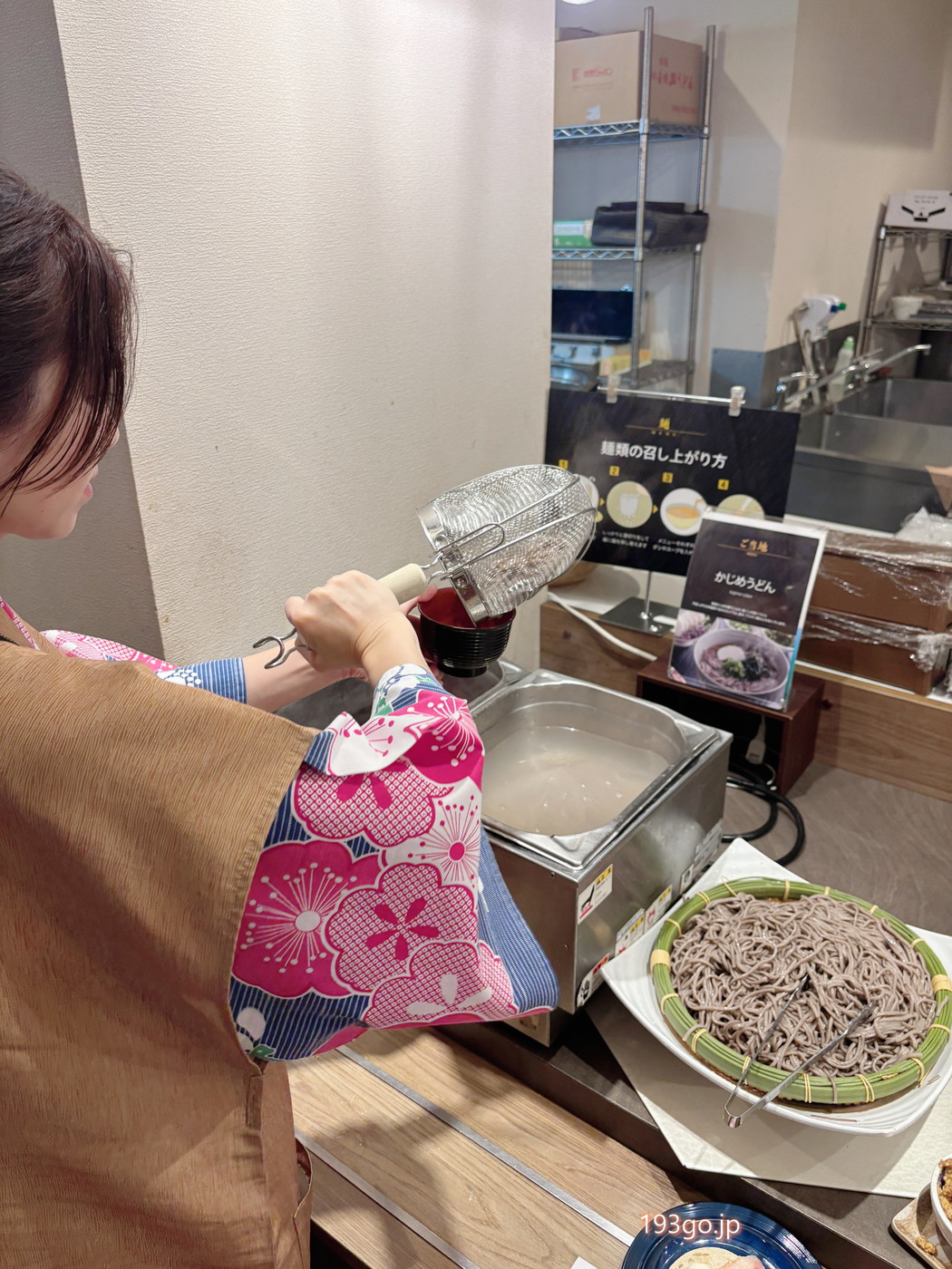ライブキッチンでは天ぷら、鰻の蒲焼、ステーキ、焼きすきなど出来立ての料理を提供。