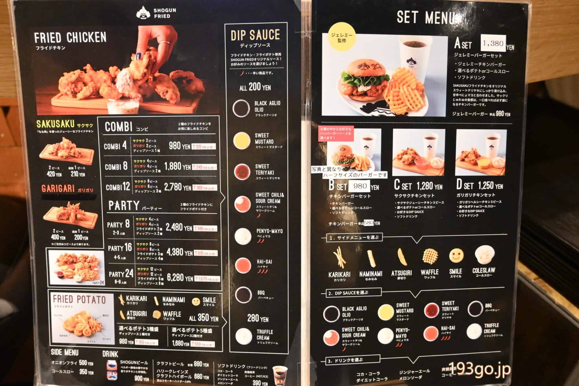 ショーグンフライドのメニュー