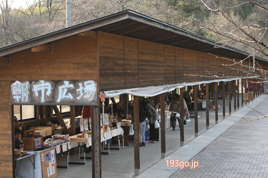 山道を25分ほど走り昼神温泉の朝市へ。(毎朝6時~8時まで開催、駐車場無料)