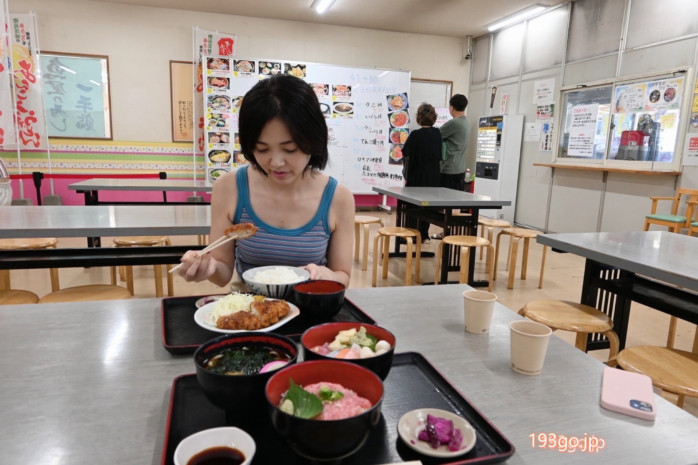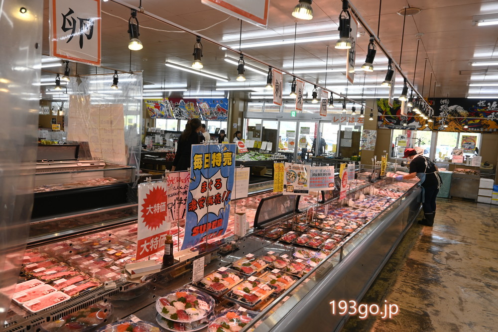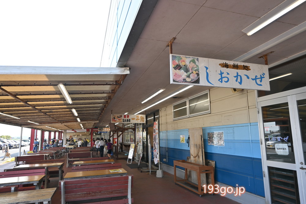 鮮魚や精肉・加工食品、お惣菜、お土産など何でも売ってるシーフードショップトビタ(8:00~17:00)、開運回転寿司 一平鮨(平日10:30~17:00/土日祝10:30~19:00)、食堂 勘太そば(平日11:00~15:00/土日祝11:00~16:00)が並んでる。