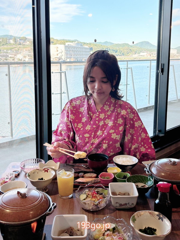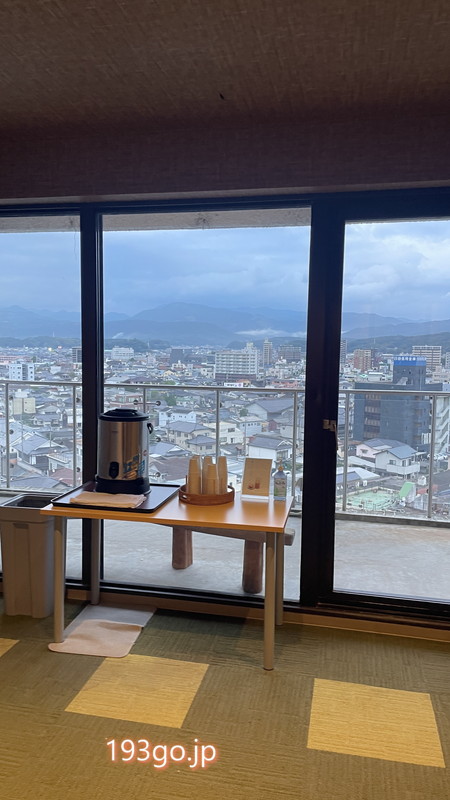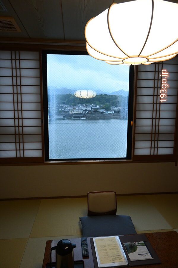 川や町並みを一望できる抜群の眺め。朝晩の温泉を満喫。