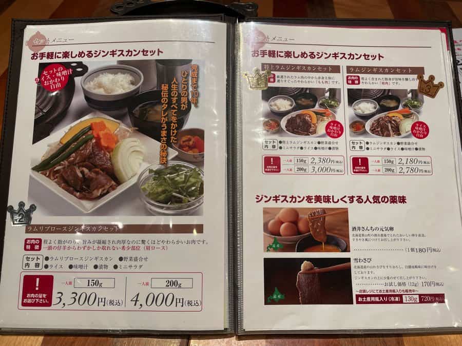 店員さんに聞くと、一番人気は「ラムジンギスカンセット」。