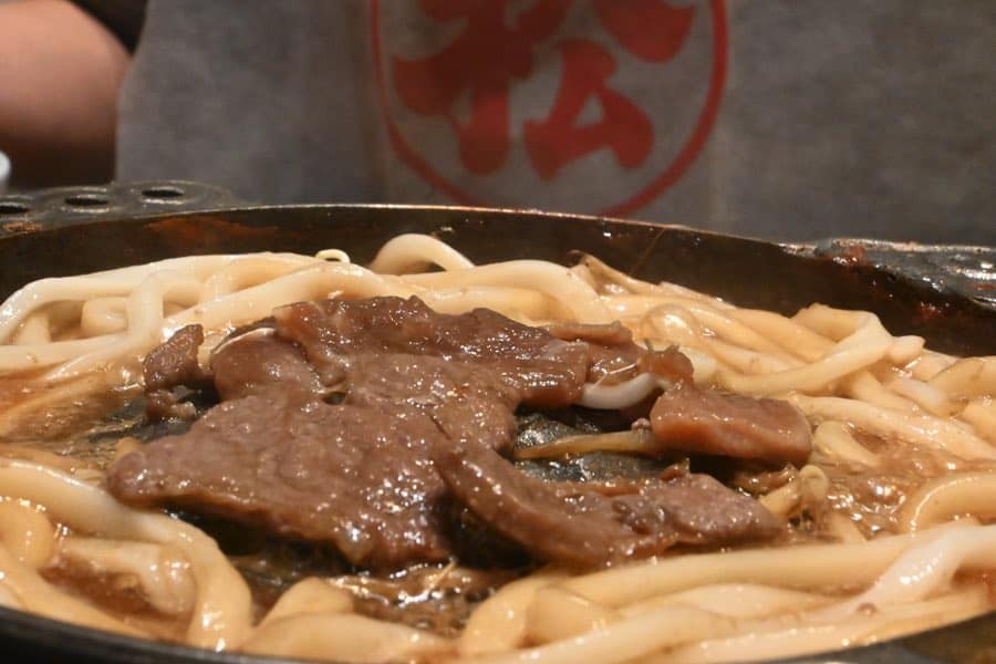 タレで煮込んだうどんは、間違いないうまさ。すき焼きに入れたうどんのようだった。