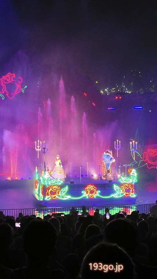 驚くような特殊効果、スリル満点のスタント、目がくらむような花火、刺激的な音楽と共に、踊るような噴水と光のキャンバスにディズニーの名作アニメが描かれる「ファンタズミック!」。