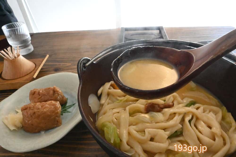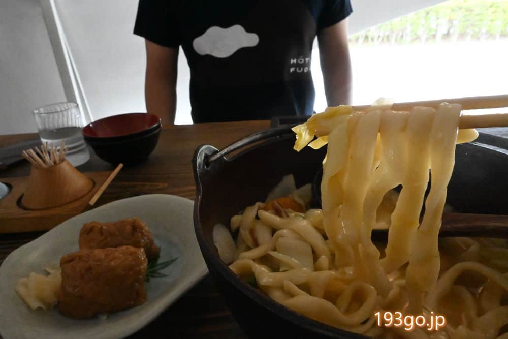 熱々鍋で食べる出汁が旨いほうとう フワモチ極太麺!