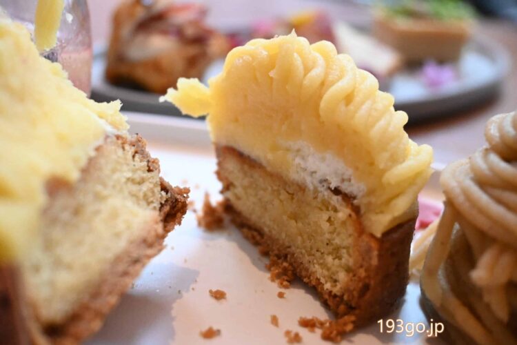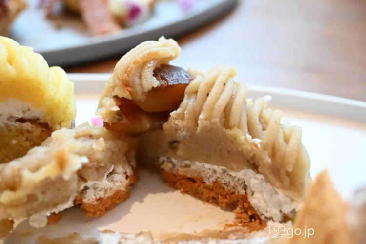 和栗のモンブランは、焼き上げたメレンゲ&生クリーム入り。