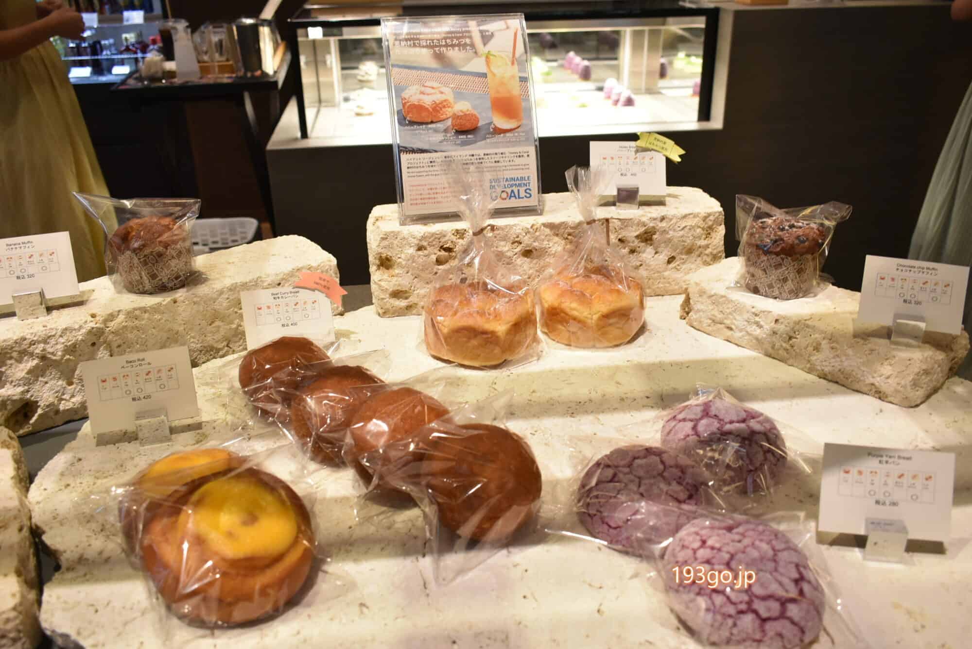 滞在した「ザ・ アイランド」の1Fマーケットには、ホテルで作られたオリジナルのケーキやパンがズラリ!