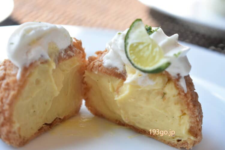 「恩納はちみつシュー」は、生地とクリームにもハチミツが練り込まれている。