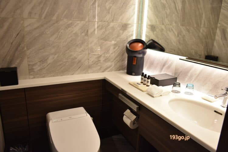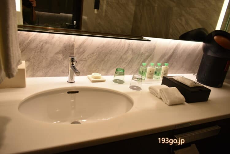 ベッドルームの奥のバスルームには、ブルガリのアメニティーが用意されていた。