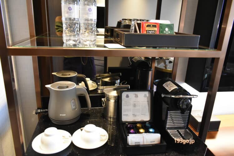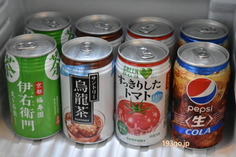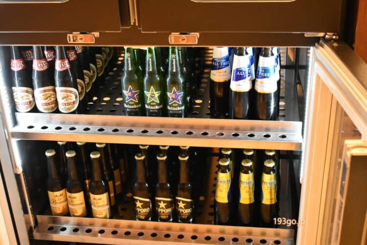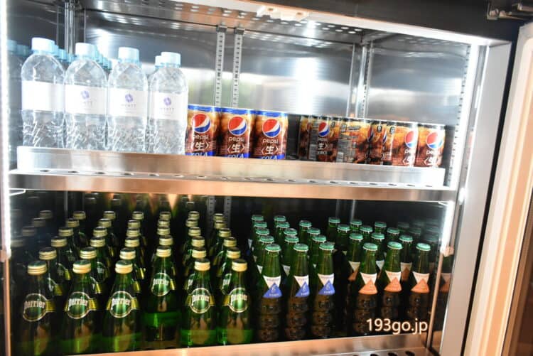 ミニバー付きで、冷蔵庫の中のドリンクがサービス。
