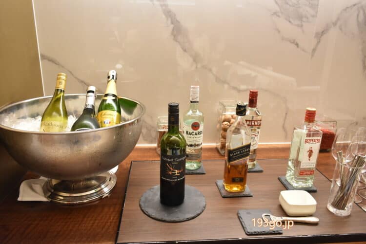 カッコいいクラブラウンジで寛ぎ。フリードリンク、何が楽しめる?