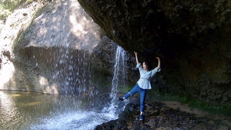 滝の裏側がえぐれていて、流れの背後に回り込むことができる。