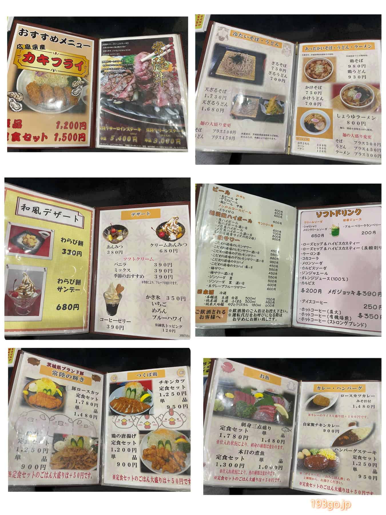 メニューを広げると、定食、刺身、蕎麦、カレー、ハンバーグにスイーツと、種類豊富。