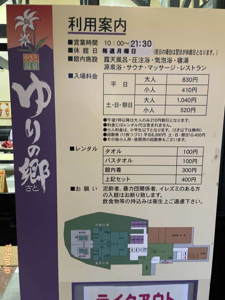 市街地から山の方の入って行き、田舎道を通り、やさと温泉「ゆりの郷」に到着。