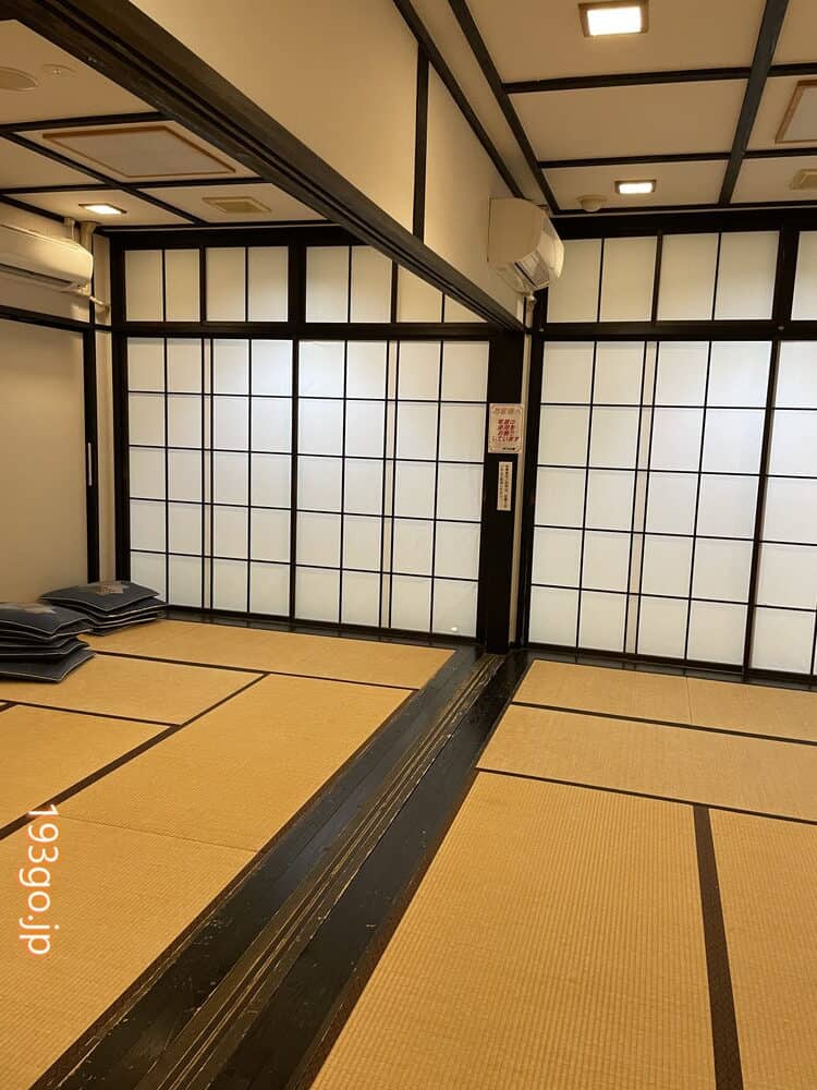 畳の間の休憩処には座布団が置かれ、寝転んだりできる。