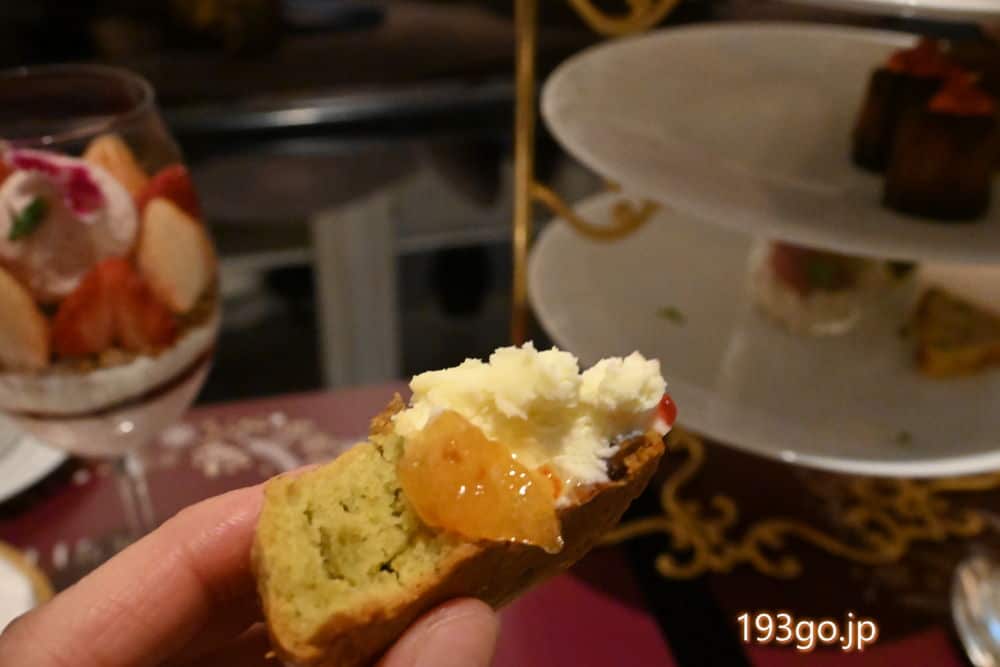 スコーンは、ピスタチオとショコラオランジュ風味の2種類。